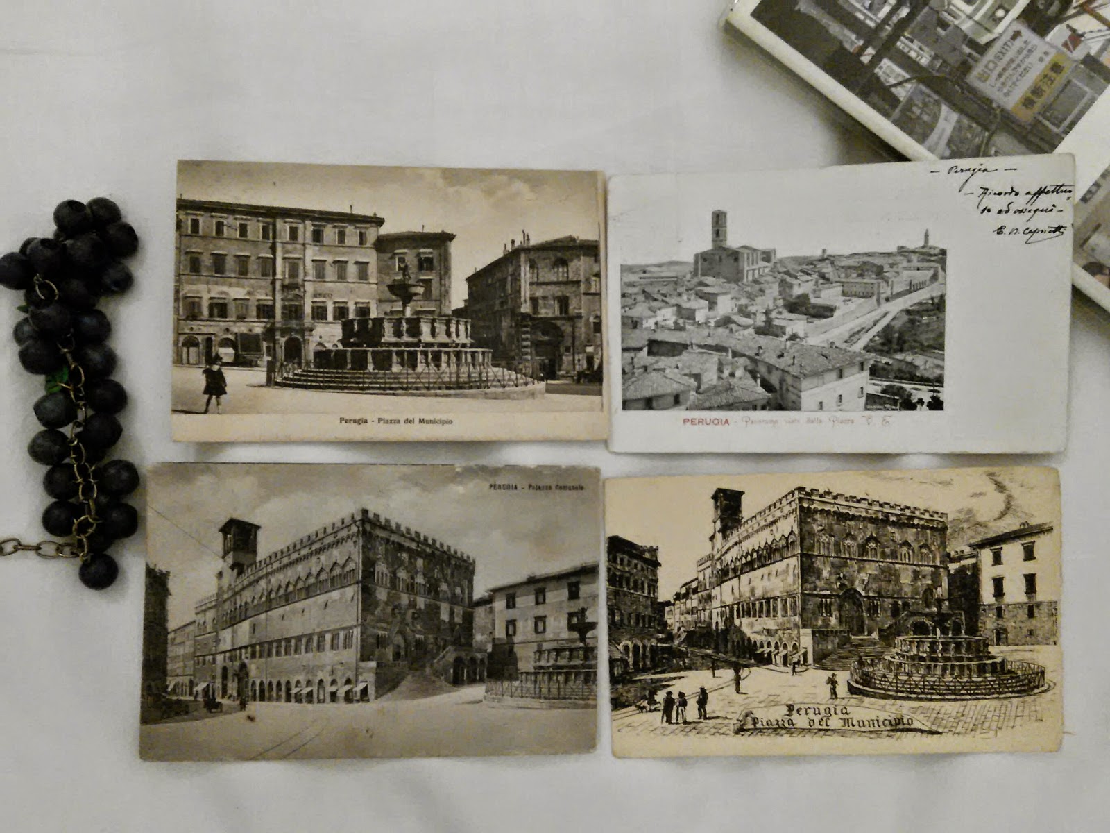 I bought some old postcards at the flea market in Italy. They all are stamped and show Perugia. An old man who sold then was very nice and seemed to love postcards as I do.